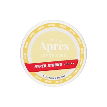 No.3 Après Lemon Curd Hypèr Strong Nicotine Pouches combine the smooth sweetness of creamy lemon curd with a bold nicotine hit. Each pouch contains 11 mg of nicotine, offering a delicious balance of zesty citrus and satisfying strength. Perfect for those who love a fresh, tangy flavour with extra intensity.
