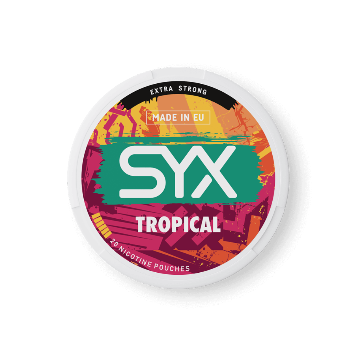 SYX Tropical Xtra Strong Nicotine Pouches deliver a vibrant burst of tropical fruit flavour with a powerful nicotine hit. Each pouch contains 20 mg of nicotine, offering an intense and satisfying experience that blends sweetness, freshness, and strength. Perfect for users who want bold flavour and extra-strong impact.